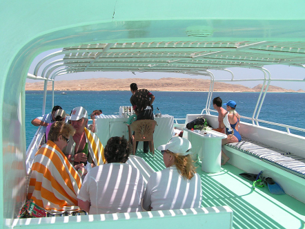 Cesta lodí na ostrov Giftun nedaleko Hurghady.